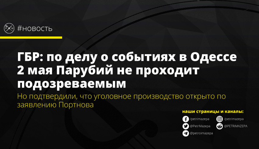 В Государственном бюро расследований (ГБР) сообщили, что экс-председатель Верховной Рады Андрей Парубий не является подозреваемым по делу о событиях в Одессе 2 мая 2014 года, как бы того не хотелось его тезке Портнову.