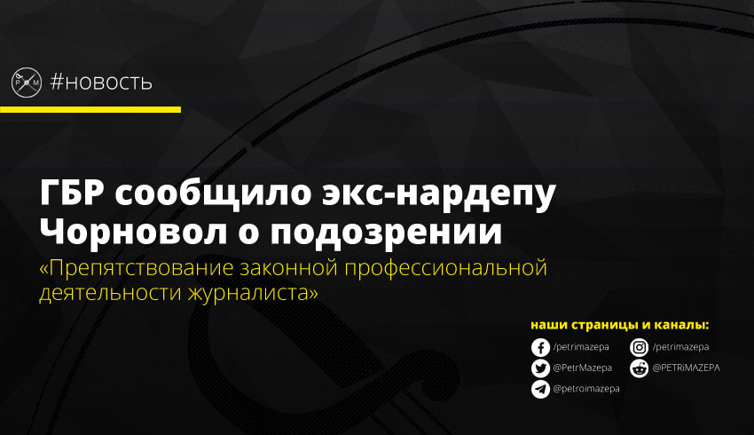Государственное бюро расследований сообщило экс-нардепу Татьяне Чорновол о подозрении в препятствовании законной профессиональной деятельности журналиста.