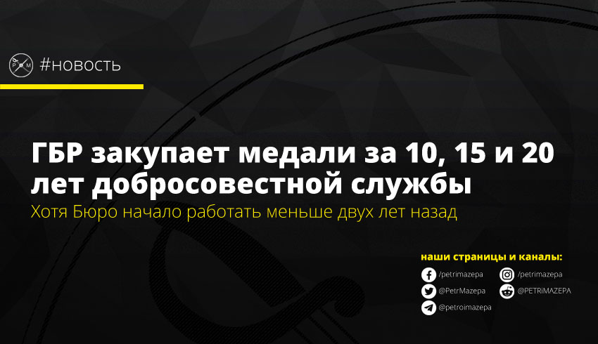 ГБР закупает медали за 10, 15 и 20 лет добросовестной службы
