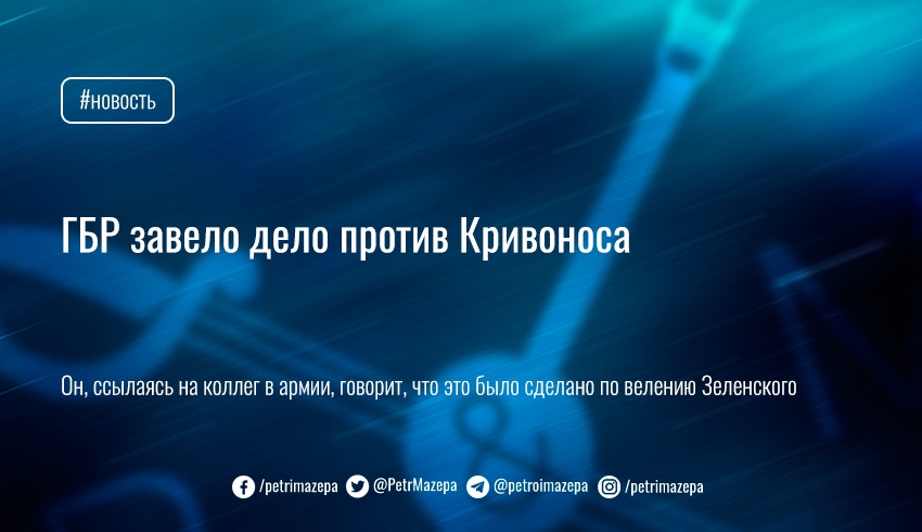 Об этом со ссылкой на слова самого Кривоноса и копии соответствующих документов сообщил главред «Цензора» Юрий Бутусов. По его данным, сегодня, 28 августа, по военным штабам ВСУ на фронте разослали телеграмму ГБР о возбуждении дела. Ее он предоставил.
