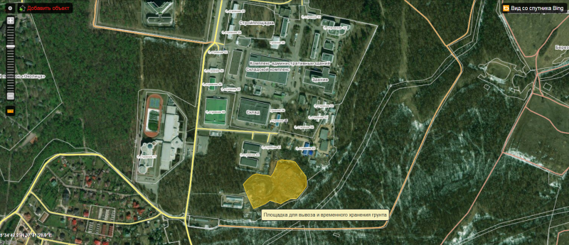 Это значительная по площади и хорошо охраняемая территория комплекса Службы внешней разведки России. Мы предполагаем, что именно здесь может находиться лаборатория для изготовления отравляющих веществ. Согласно спутниковым снимкам, наличие на территории места для складирования вынутого грунта позволяет допустить, что рядом было организовано подземное строительство, о котором речь пойдёт ниже. Объем вынутого грунта значительный. В последние годы на территории в/ч также идёт строительство новых наземных объектов: сравнительно недавно там был завершён монтаж водяной системы охлаждения для нового крупного специализированного объекта по размещению серверного и сетевого оборудования (ЦОД).