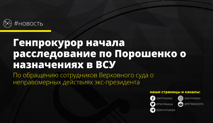 Генпрокурор начала расследование по Порошенко о назначениях в ВСУ