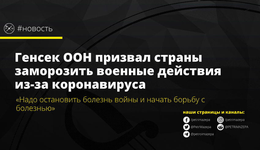 Генсек ООН Антониу Гутерриш призвал весь мир прекратить вооруженные конфликты и объединиться против общей глобальной угрозы - коронавируса COVID-19.