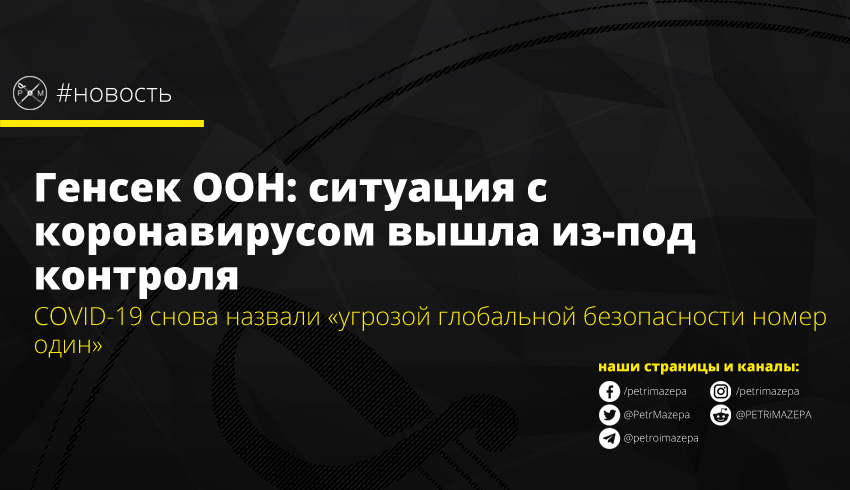 Генеральный секретарь ООН Антониу Гутерриш заявил, что пандемия COVID-19 вышла из-под контроля и напомнил, что количество жертв пандемии приближается к миллиону.