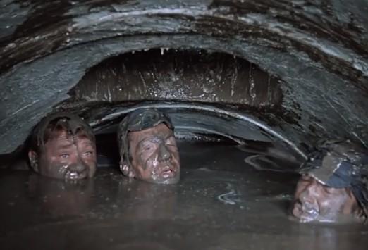 И в то же время в фильм вставляют очевидно нелепые сцены — примерно как Штирлиц в будёновке. Скажем, сцена в камере, где нелепо вообще всё — от первого слова до последнего.