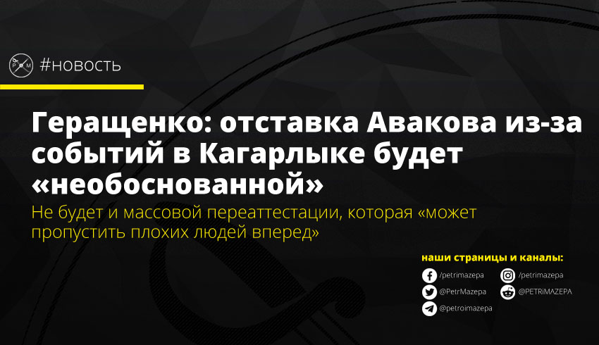 Советник главы МВД Антон Геращенко сообщил, что отставка Арсена Авакова из-за событий в Кагарлыке будет «необоснованной». По его словам, за пытки ответят полицейские, у которых «что-то перемкнуло в голове», не будет работать и начальник отделения, однако массовой переаттестации не будет, потому что она «может пропустить плохих людей вперед».