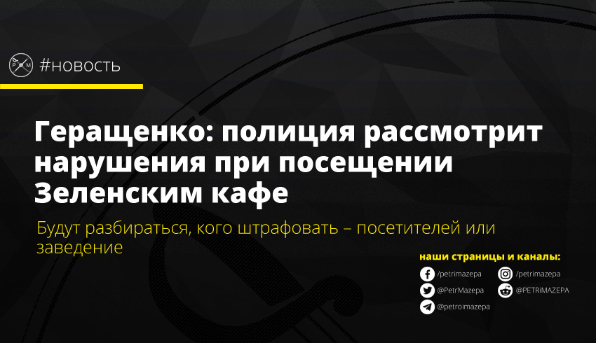 Геращенко: полиция рассмотрит нарушения при посещении Зеленским кафе