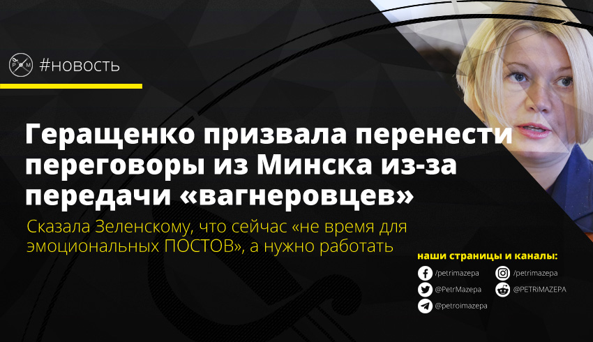 Геращенко призвала перенести переговоры из Минска из-за передачи «вагнеровцев»