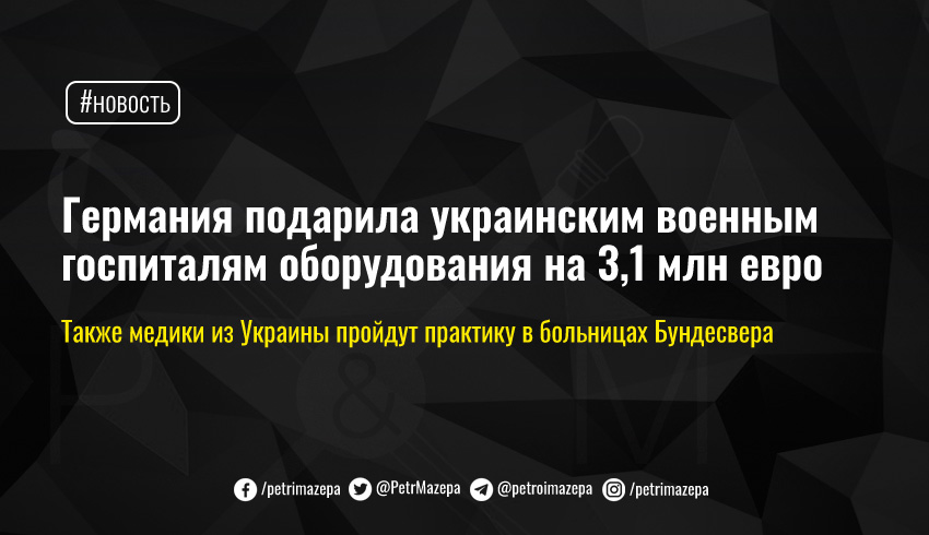 Германия предоставила украинским военным госпиталям медицинское оборудование общей стоимостью 3,1 млн евро. Также стало известно о том, что украинских медиком пригласят пройти практику в госпиталях Бундесвера получат консультации для оптимального использования аппаратов.