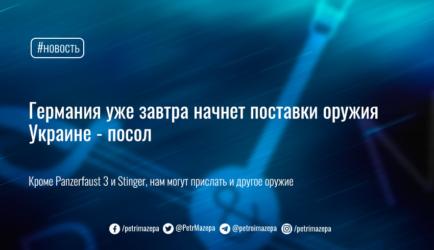 Германия уже завтра, 28 февраля, начнет поставки оружия в Украину. Также Берлин готовит поставки других видов вооружений, помимо Panzerfaust 3 и Stinger.