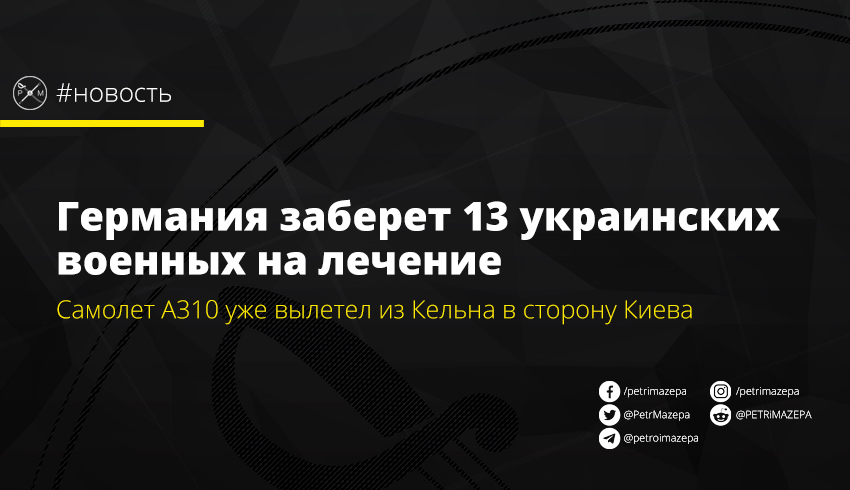 «Совместно с медицинской службой Бундесвера мы доставляем раненых из Украины в Германию для дальнейшего лечения. Самолет А310 вылетел из Кельна в сторону Киева. Мы ожидаем его возвращения сегодня вечером с 13 пациентами на борту», - сообщили Военно-воздушные силы ФРГ в Twitter.