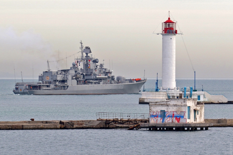 Флагман украинских Военно-морских сил фрегат «Гетман Сагайдачный» покинул главную базу флота в Одессе и отправился в открытое море на учения. Там он проведет совместные с американским эсминцем маневры.