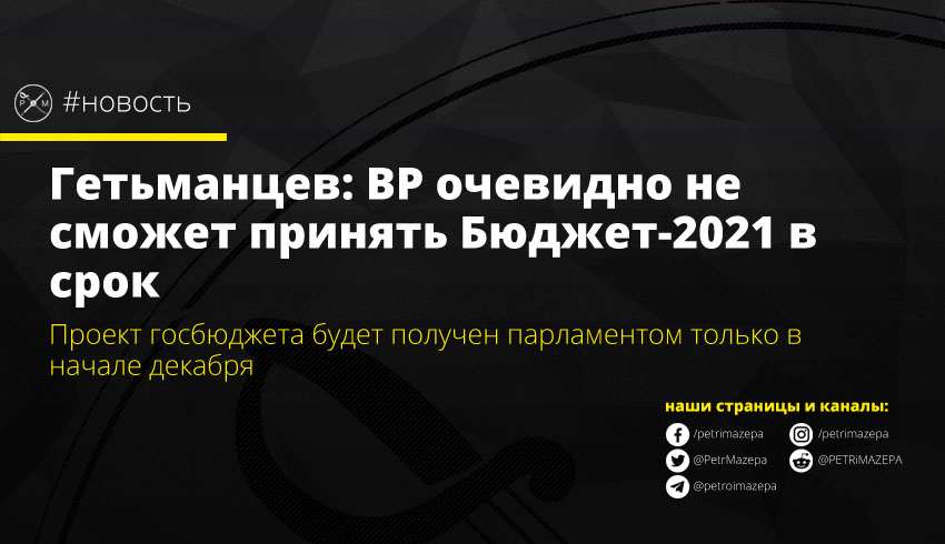 «Мы, очевидно, не вложимся в установленный Бюджетным кодексом срок. Это уже очевидно, к сожалению. Мы должны извиниться перед людьми, что не придерживаемся этого срока. До 1 декабря мы должны в целом принять (Бюджет 2021 – прим. ред). К сожалению, мы не сможем этого сделать, очевидно, в этом году», - цитирует заявление Гетьманцева издание «Укринформ».