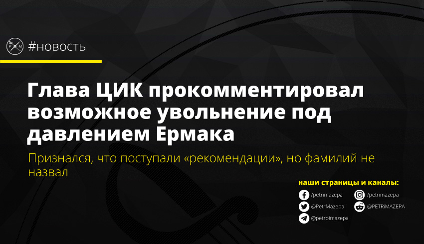 Но подтвердил, что распространенная информация о встрече в Офисе президента с членами ЦИК «соответствует действительности частично». «От людей, приближенных к Офису президента, мне поступала рекомендация о моем увольнении по собственному желанию и увольнении еще четырех членов Комиссии. С намеками о возможных негативных последствиях в случае отказа», - добавил глава ЦИК.