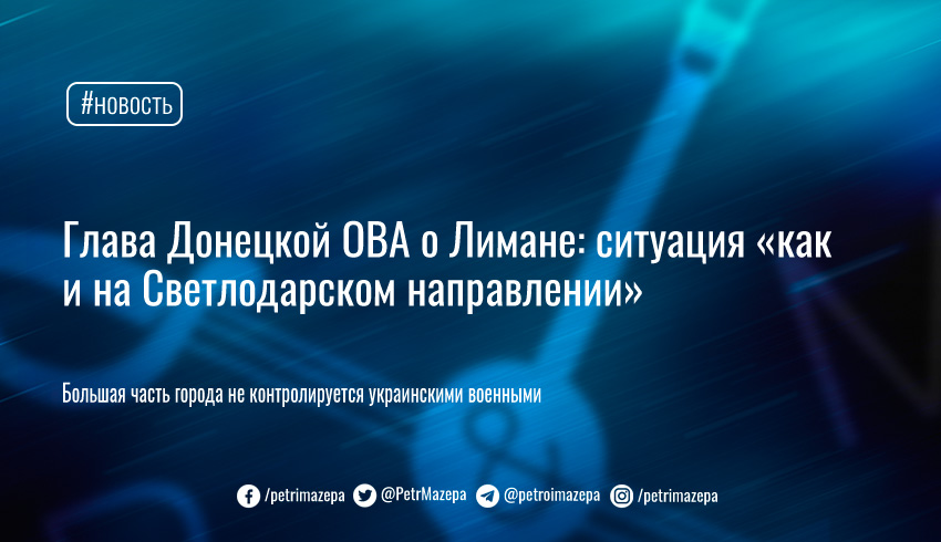 Глава Донецкой ОВА Павел Кириленко сообщил, что украинские военные не контролируют большую часть Лимана. Они отошли на более укрепленные позиции. На Лиманском направлении продолжаются горячие бои.