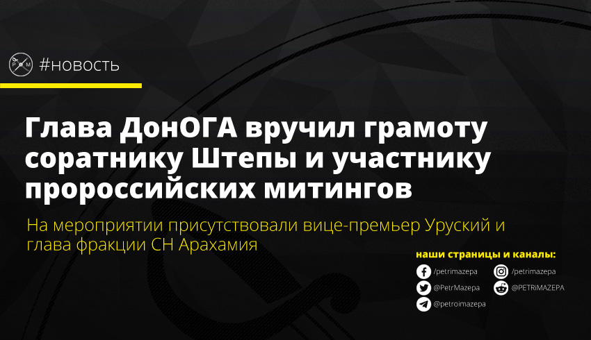 Глава ДонОГА вручил грамоту соратнику Штепы и участнику пророссийских митингов