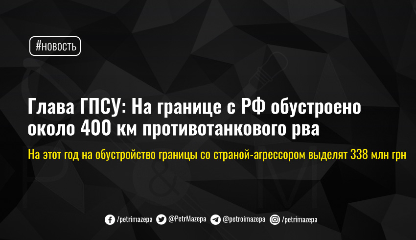Глава ГПСУ: На границе с РФ обустроено около 400 км противотанкового рва