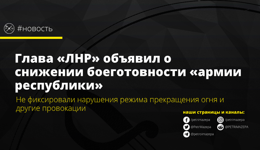 Глава так называемой «ЛНР» Леонид Пасечник заявил, что было принято решение о снижении уровня боевой готовности подразделений.