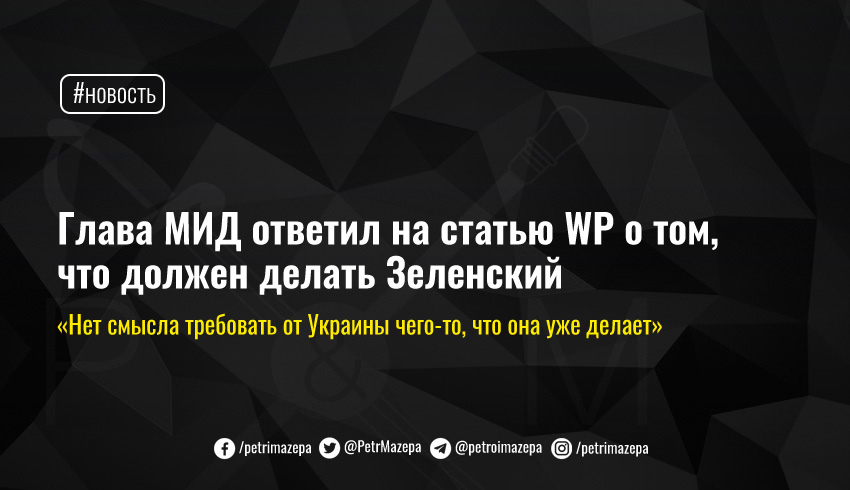 Глава МИД ответил на статью WP о том, что должен делать Зеленский