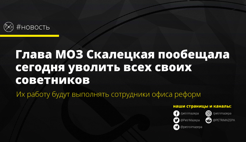 Глава МОЗ Скалецкая пообещала сегодня уволить всех своих советников