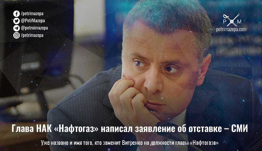 Глава правления НАК «Нафтогаз» Юрий Витренко написал заявление об отставке — решение ожидается до конца недели, а заменить его в должности главы НАК должен действующий министр развития громад и территорий Алексей Чернышев.