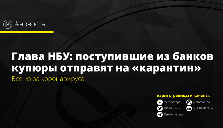 Национальный банк Украины намерен поместить на двухнедельный «карантин» купюры, которые будут поступать от коммерческих банков. Задержка обработки наличности связана с опасностью заражения коронавирусом сотрудников НБУ.