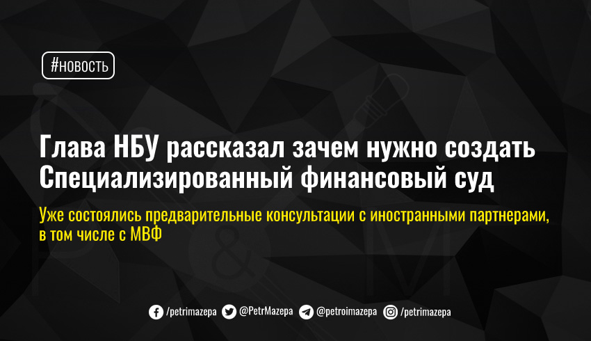 Среди важных преимуществ создания Специализированного финансового суда председатель НБУ назвал: