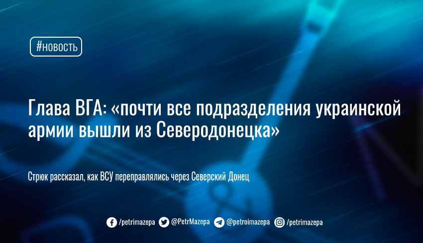Глава ВГА: «почти все подразделения украинской армии вышли из Северодонецка»