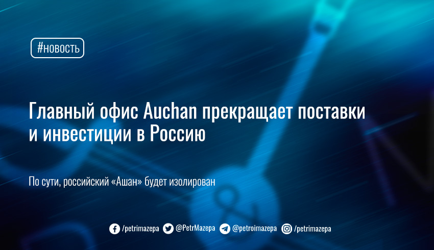Главный офис сети гипермаркетов Auchan принял решение прекратить поставки и остановить инвестиции в Россию.