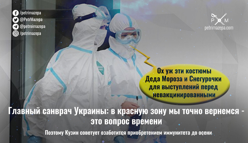 Главный санитарный врач Украины Игорь Кузин сообщил, что осенью прогнозируют возвращение Украины в «красную» зону карантина. Причиной этому станет штамм «Дельта», который более заразен и уже регистрируется в нашей стране, а также еще более сильно снизившаяся дисциплина соблюдения коронавирусных ограничений.