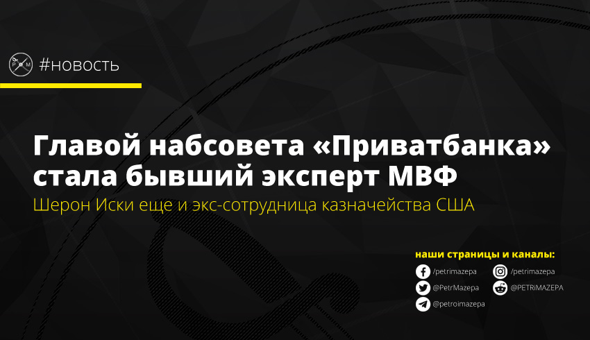 Наблюдательный совет «Приватбанка» (состоит из шести независимых членов и трех представителей государства) возглавила бывший международный советник Управления технической помощи Казначейства США и эксперт-консультант МВФ Шэрон Иски.
