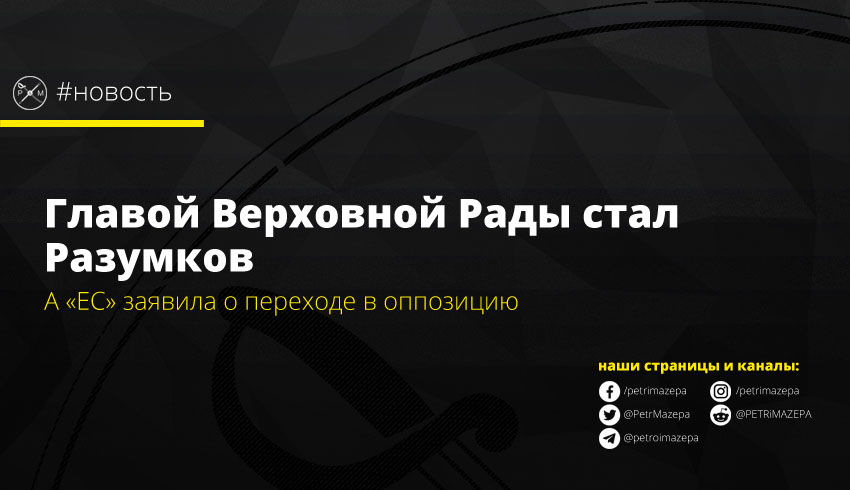 Главой Верховной Рады избран депутат от «Слуги народа» Дмитрий Разумков. Он был единственной кандидатурой, предложенной на этот пост, и его поддержало подавляющее большинство депутатов. А представители партии «Европейская солидарность» во время выступления заявили о переходе в оппозицию.