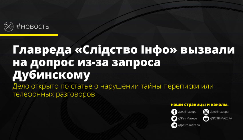Главреда «Слідство Інфо» вызвали на допрос из-за запроса Дубинскому