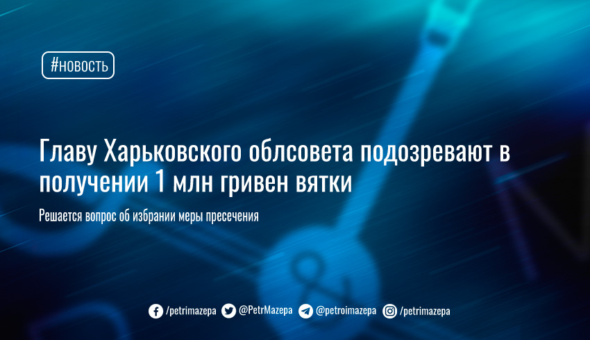 По данным следствия, в начале 2021года глава Харьковского областного совета в сговоре со своим заместителем требовал и получил неправомерную выгоду в 1,05 млн грн за оставление в должности руководителя областного коммунального предприятия, учредителем которого является Харьковский областной совет.