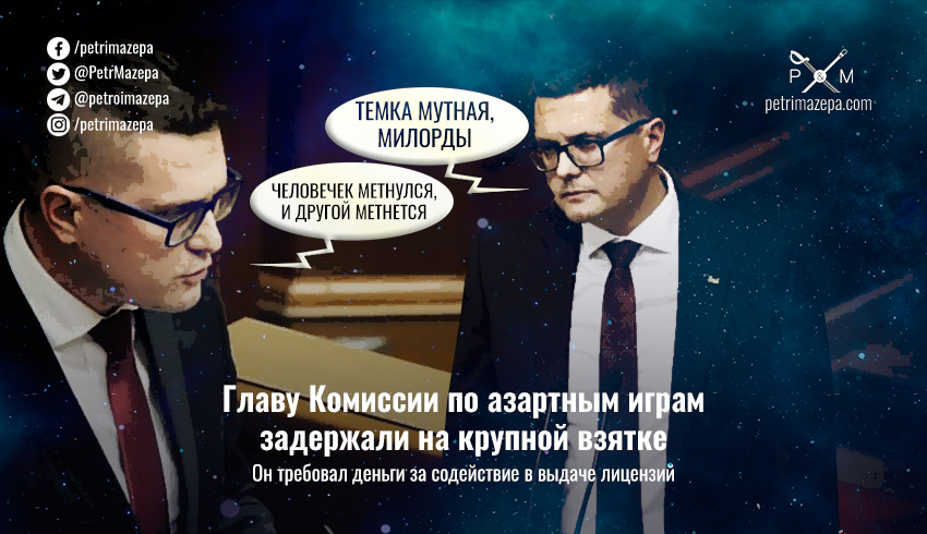 «...был задокументирован и задержан на вымогательстве исполняющий обязанности главы комиссии Евгений Гетьман. Агент просил оформить лицензию на организацию азартных игр в двух помещениях в Черниговской и Запорожской областях - не самых зажиточных регионах Украины, и торговался, чтобы сбить цены. Но «слуга народа» Гетьман сказал, что платят взятки все, и за одну лицензию по каждому маленькому помещению надо заплатить по 45 тысяч долларов, то есть всего - 90. На записи «слуга народа» объясняет агенту НАБУ, почему взятка составляет именно 90 тысяч долларов - каждому члену комиссии за каждое решение из этих денег полагается по 5 тысяч долларов, а остальное передают «наверх», - говорится в посте Бутусова.