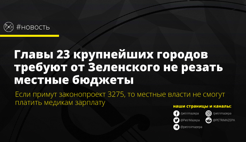 Главы 23 крупнейших городов требуют от Зеленского не резать местные бюджеты