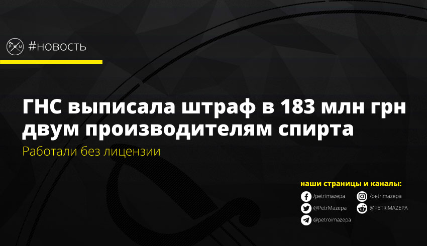ГНС выписала штраф в 183 млн грн двум производителям спирта