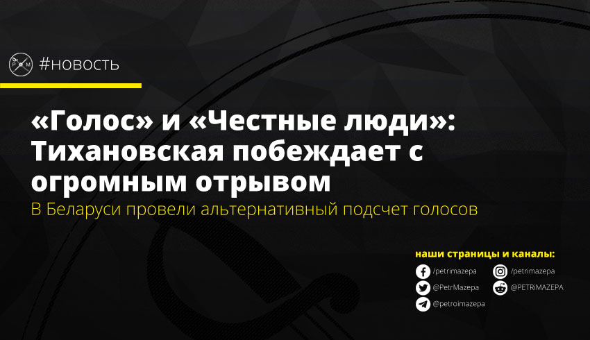 Движения «Голос» и «Честные люди» провело альтернативный подсчет голосов на президентских выборах Беларуси – на данный момент им удалось обработать 1248 протоколов с избирательных участков (около 30% избирателей) и по их данным Светлана Тихановская опередила Александра Лукашенко со значительным отрывом.
