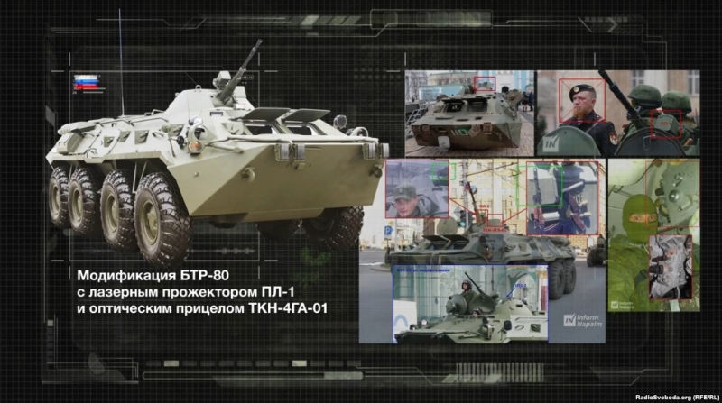 Один із прикладів — ідентифікація нової моделі БТР-80 — із лазерним прожектором і оптичним прицілом виробництва Ростовського оптико-механічного заводу.