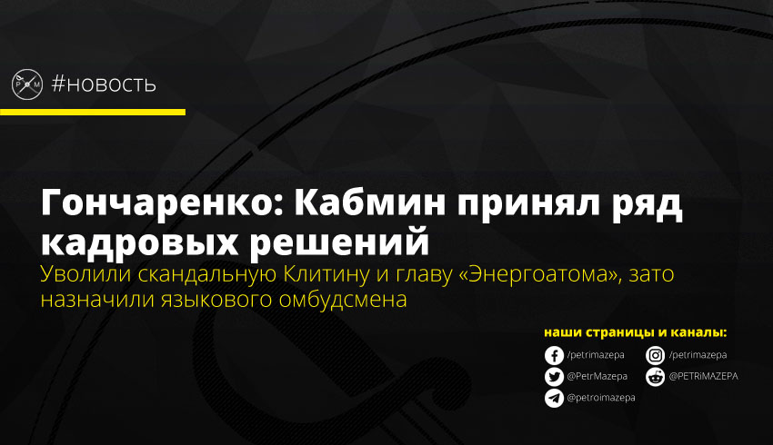 Кабинет министров на сегодняшнем заседании принял решение уволить скандально известную замминистра Александру Клитину, а также отправить в отставку главу НАЭК «Энергоатом» Юрия Недашковского. Среди интересных назначений – языковым омбудсменом стала Татьяна Монахова, а главой госрезерва – Ярослав Погорелов.