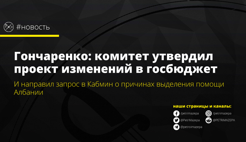 Также бюджетный комитет принял решение отправить запрос в Кабмин с просьбой разъяснить причины предоставления 10 млн грн помощи Албании.