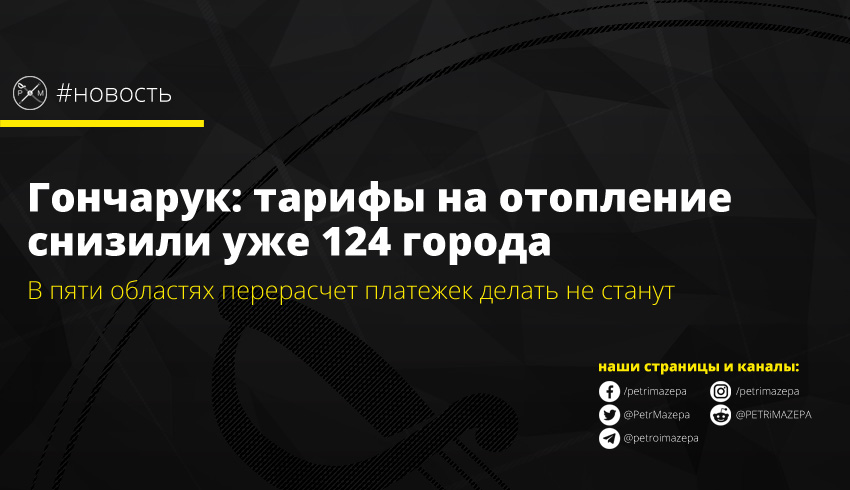 В 124 городах Украины 131 предприятие теплокоммунэнерго после перерасчета снизили платежки за тепло и горячую воду до 30%. По словам премьера это стало возможным, потому что цены на газ на рынке снизились, а правительство предоставило местным властям механизм, чтобы сделать корректировки в платежках.