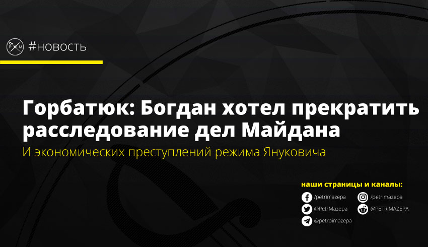 Руководитель Офиса президента Андрей Богдан призывал прекратить расследование преступлений времен Революции достоинства и экономических преступлений как экс-президента Януковича, так и его окружения. Об этом рассказал экс-глава управления спецрасследований ГПУ Сергей Горбатюк.