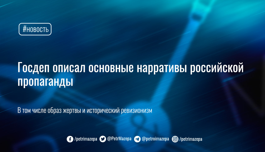 Государственный департамент США опубликовал пять главных дезинформационных нарративов российской пропаганды, действующих как шаблон, что дает возможность Кремлю корректировать их с полным игнорированием истины для поддержки своих политических целей.