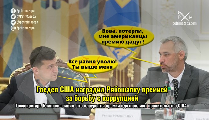 Государственный департамент США учредил и вручил премии в сфере борьбы с коррупцией. Среди 12 лауреатов оказался и экс-генпрокурор Украины Руслан Рябошапка. Его наградили за работу по старту переаттестации прокуроров, которая, как ожидается, «будет иметь долговременное влияние».