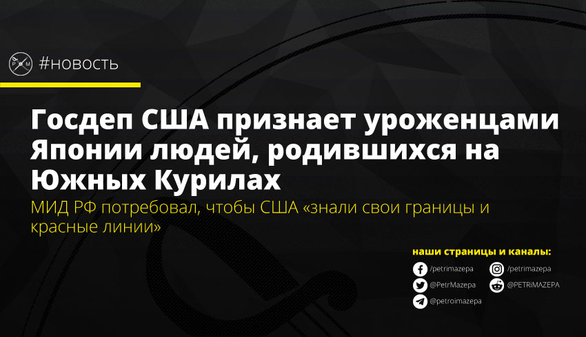 Государственный департамент США теперь заявил, что считает уроженцами Японии людей, родившихся на Южных Курилах. МИД РФ отреагировал на это в своем любимом стиле – обвинил США в реваншизме, и потребовал чтобы те «знали красные линии».