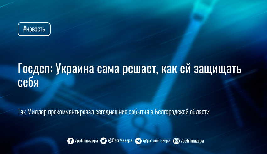 Об этом заявил представитель Госдепа Мэтью Миллер, комментируя события в Белгородской области сегодня, 22 мая.