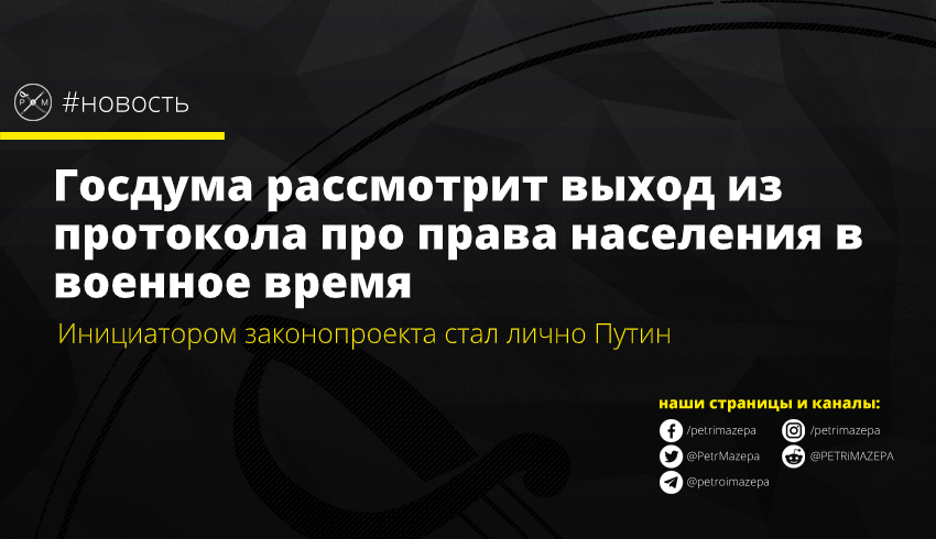 Госдума рассмотрит выход из протокола про права населения в военное время