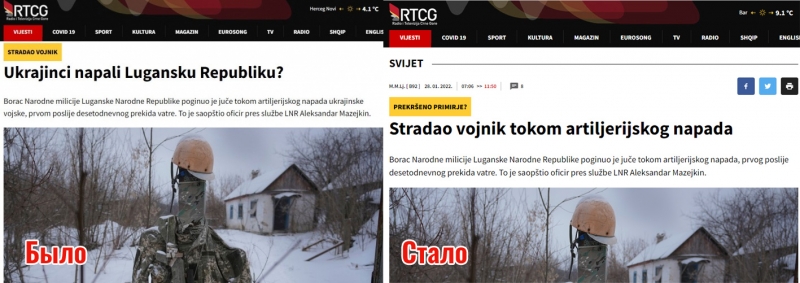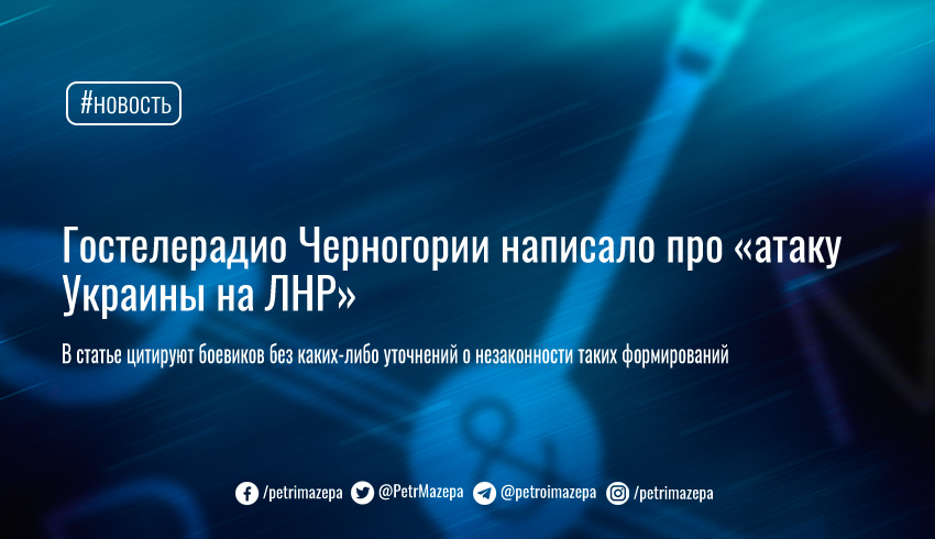 На сайте  государственной телерадиокомпании Черногории RTCG вышел материал о якобы «нападении украинцев» на «ЛНР» на временно оккупированных территориях Донбасса, ссылаясь на заявления террористов.