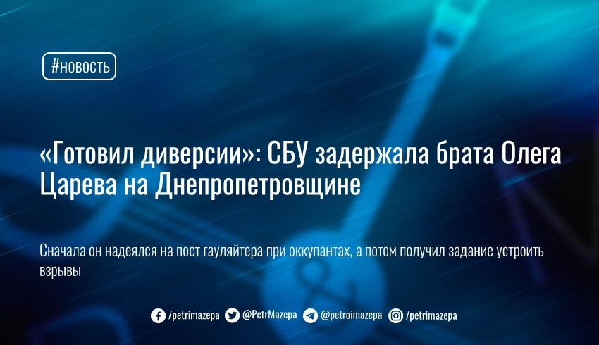 После полномасштабного вторжения россии брат Царева был уверен в быстрой победе россиян и даже готовился к назначению на должность «главы Днепропетровской ОГА» в оккупационной администрации. Когда его надежды на приход россиян не оправдались, он начал получать указания от своих кураторов, в частности, по дестабилизации ситуации в регионе путем взрывов на объектах транспортной и критической инфраструктуры. Но СБУ установило за ним контроль еще на первоначальном этапе, и потому задержала его, предотвратив негативные последствия.